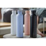 A reusable drinking bottle from the Bottle Up brand, made from sugar cane waste and filled with English spring water. Leakproof. Content 500 ml. Bottle Up encourages you to keep refilling your bottle. The affordable sustainable solution to single-use plastic. When you need water on the go, but don’t want to leave any waste behind: Bottle Up. The sugar cane bottles are BPA-free and easy to clean so when you’re finished you can refill your bottle with tap water and use it again and again. Drink the water, keep the bottle! In the U.K. our spring water comes from Elmhurst spring in Staffordshire. The water from this source is naturally mineralized through glacial stratus formed more than 100,000 years ago. Our water partners hold a BRC ‘A’ accreditation certificate and are regularly audited internally and externally.