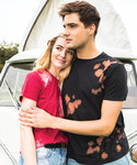 Short sleeved T made from ringspun cotton. 3 bold colours with bleach out detail.