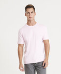 Modern fit. Short sleeves. Side seams. Taped neck. Ribbed crew neck. Twin-needle stitching detail on sleeve and bottom hem. Size label only for easy rebranding - colour coded black for unisex.