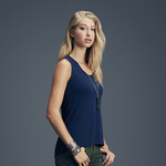 Loose fit A-line silhouette sleeveless t-shirt with side seam.